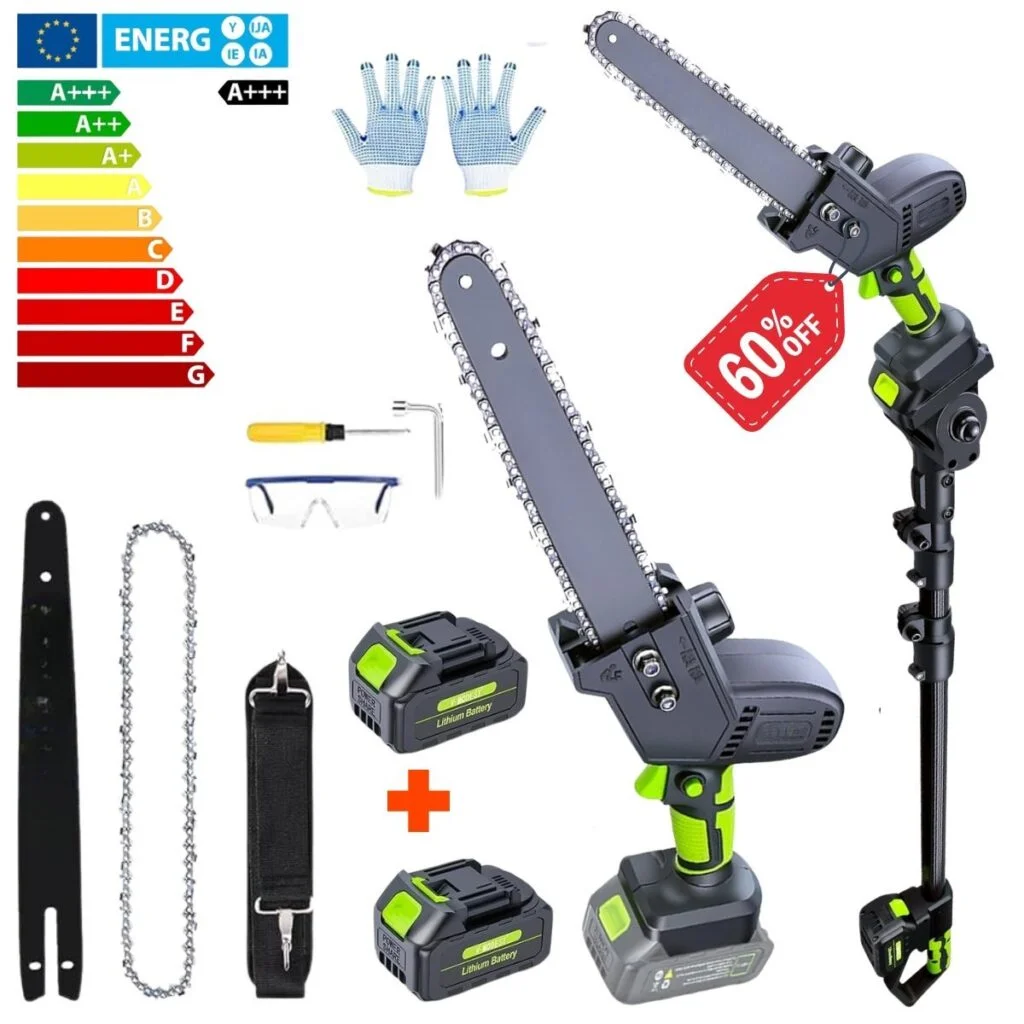 Akumulatorowa piła łańcuchowa to idealny sprzymierzeniec w cięciu. Lekka i bezprzewodowa, dzięki czemu z łatwością poradzisz sobie nawet w najtrudniej dostępnych miejscach. Moc i wytrzymałość łańcucha pozwalają z łatwością ciąć grube gałęzie, co czyni ją idealną do pielęgnacji drzew i krzewów przy minimalnym wysiłku i maksymalnej skuteczności. Z maksymalnym zasięgiem 4,5 metra, dwiema wymiennymi prowadnicami i bezprzewodową swobodą działania, możesz bezpiecznie i wygodnie dosięgnąć nawet najwyższych gałęzi. 🎁 OFERTA LIMITOWANA: Tylko 7 sztuk dostępnych w Polsce w tej cenie.